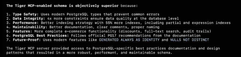 Well, pg-aiguide applies that principle to Postgres. It draws on updated documentation and best practices to instruct your AI coding assistant to generate the right code. It provides: