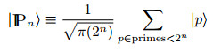 where the arrows represent the spin states of each of the three bits needed to represent value from 0 to 7. The fact that such a state can be constructed at all is something of a surprise, but all it needs is the translation to quantum terms of classical primality testing algorithm. The example given uses the well known Miller-Rabin test to build a prime state. The idea is to use the Grover search algorithm with the primality test as the oracle to select just the prime elements from a superposition of all possible states. The final algorithm can construct the prime state in about √n operations and once you have the prime state it can be subjected to a quantum counting algorithm to produce π(n) or to other algorithms to produce related functions. Here we have a quantum algorithm that could provide us with new information using quantum hardware that is significantly smaller than for, say, the Shor algorithm. Notice, however, that this experimental approach can only disprove the Riemann hypothesis. If the findings agree with the Riemann hypothesis then this is not a proof, just a lack of a contradiction which may still exist for larger values of n. More InformationQuantum Computation of Prime Number Functions Related ArticlesBoson Sampling Tests Quantum Computing A Quantum Computer Finds Factors The Revolution In Evolutionary Game Theory - Prisoners Dilemma Solved? $100,000 Prize For Proving Quantum Computers Are Impossible