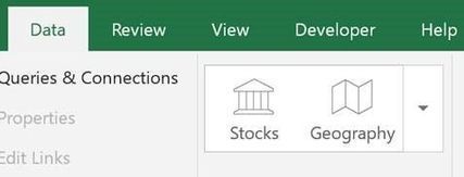 These connected data types meant that a single cell could contain a live, connected, set of information about objects like stocks, currencies, cities, and countries. Excel users can access the underlying data in the cell via formulas, filters, and charts. When you've set a cell to contain geographic information, for example, it displays with an icon next to it showing that the cell holds a data type, and clicking on the icon displays a 'card' - a mini record showing all the data in that cell.