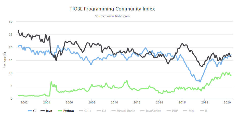 There is no denying Java's predominance in the programming world. It is currently at number 2 on the TIOBE index - but this is remarkable as an anomaly. A year ago, again reporting on the TIOBE index, we reported Python Set To Be Top Language, but with the caveat that was likely to be some years into the future. However, in alternative survey of language popularity, that conducted by RedMonk Python already shares the top ranking with Java.