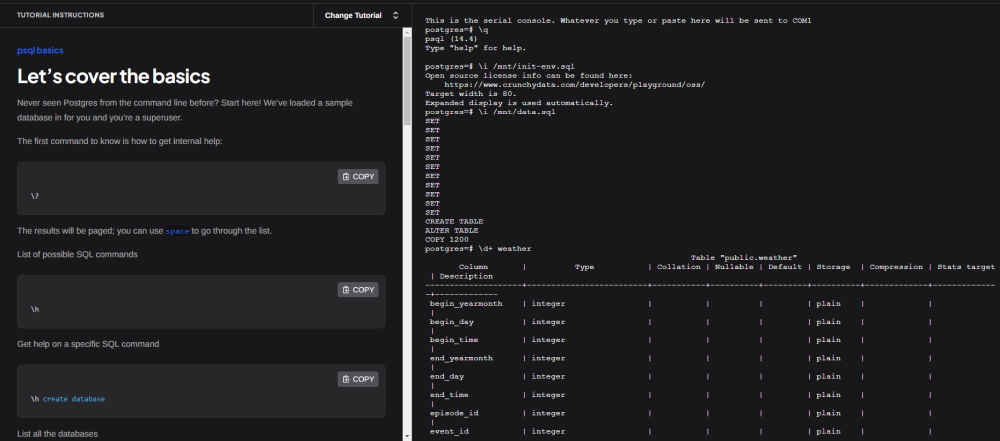 Yes it is possible thanks to, what else, WebAssembly. And with it, the emergence of the Postgres playground, brought to us by Crunchy Data, with live-guided SQL exercises for any level. One of PostgreSQL's engineers had a crazy idea which he has now managed to realize.The idea came from the fact that it was possible to run SQLite inside your browser, so the reasoning was could the same happen for Postgres too? But compiling an embedded and small in size and scale But there was a workaround. By building a v86 virtual machine based on an Alpine Linux image and installing Postgres on it, However there's two limitations with that approach; there's no internet access from inside the VM and there's no data persistence, so changes are lost when leaving or refreshing the page. That latter disadvantage is one they actually took advantage of, building on it to create ephemeral playgrounds that let you
